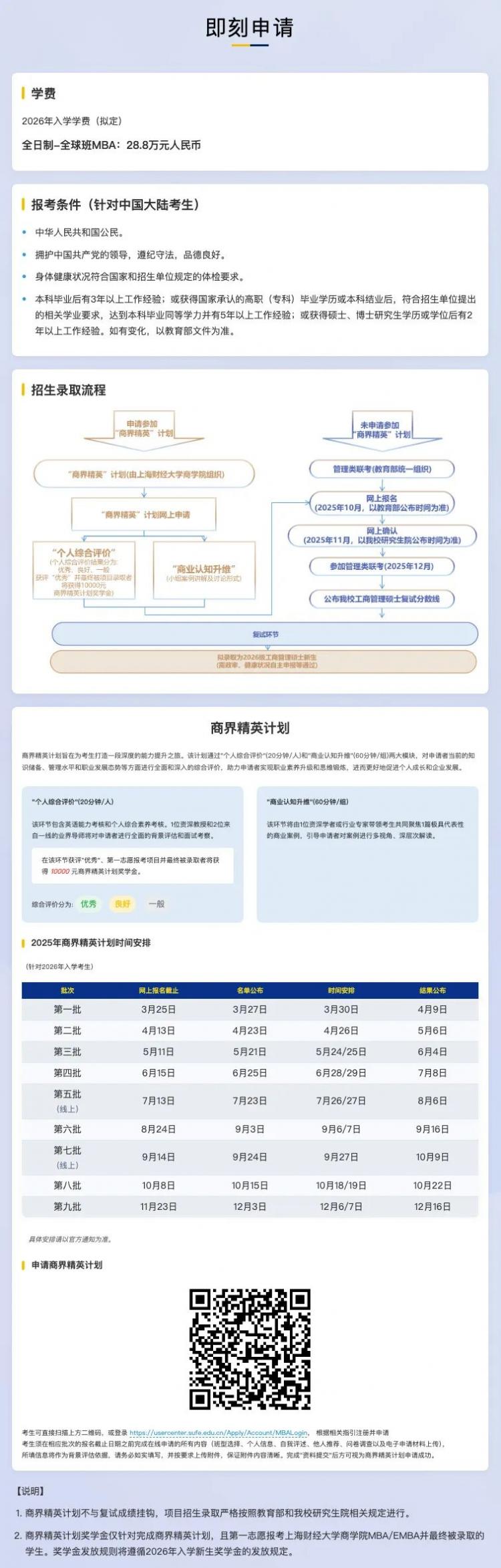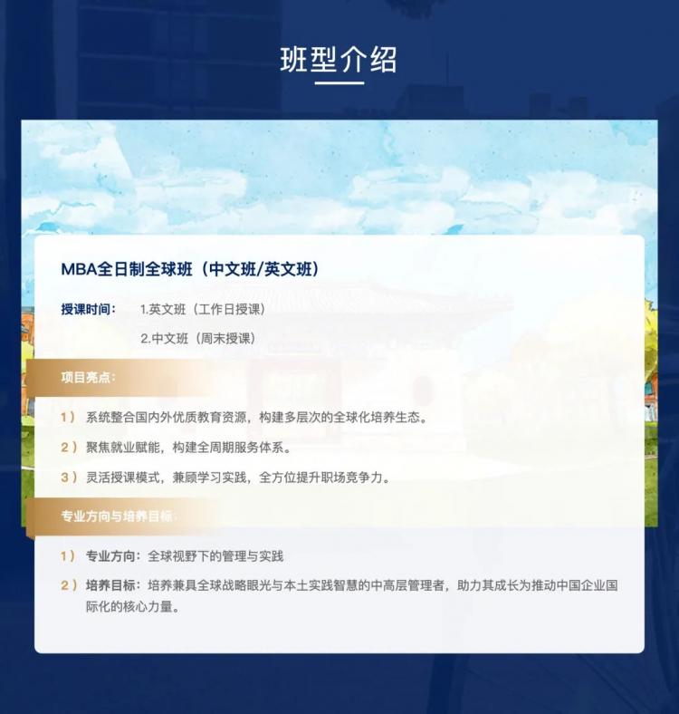 介紹了2026年入學(xué)上財(cái)商學(xué)院MBA全日制-全球班,提及通過左右滑動(dòng)可查看更多關(guān)于該班型的詳細(xì)信息 。
