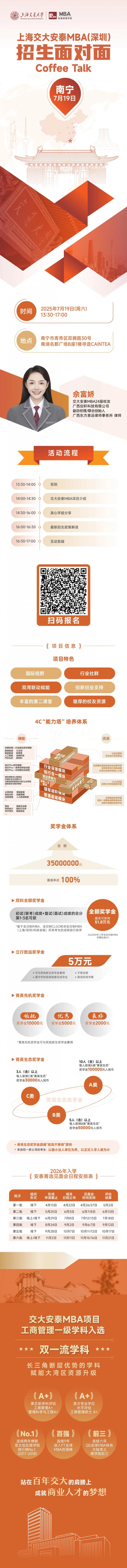活動預(yù)約 | 7月19日南寧Coffee Talk,解鎖交大安泰MBA最新招生政策!