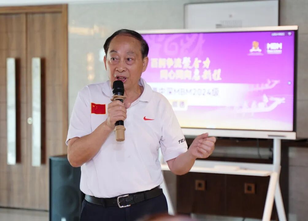 本次活動獲順德區(qū)政府特別支持。順德區(qū)委宣傳部常務副部長、區(qū)文化廣電旅游體育局局長黃宇恒親臨,熱忱邀請MBM學員在這片孕育世界冠軍的水域深度體驗,并詮釋順德城市精神與龍舟文化的一脈相承?,F(xiàn)場,他帶領同學們齊聲高呼地道金句 “嚟順德,一定得!”(意為 “來到順德,一定行!”),激昂開啟龍舟征程!