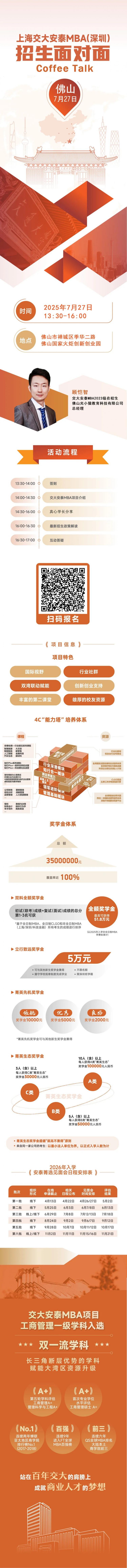 活動(dòng)預(yù)約 | 7月27日Coffee Talk佛山站,解鎖交大安泰MBA最新招生政策!