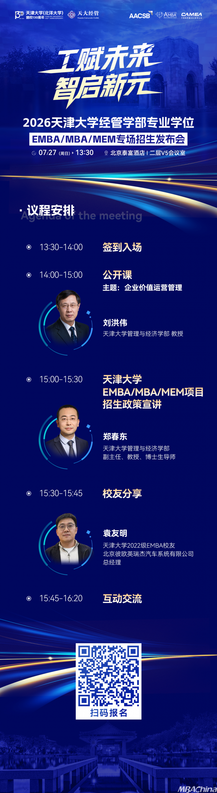 只等你來!2026級天津大學(xué)EMBA/MBA/MEM專場招生發(fā)布會