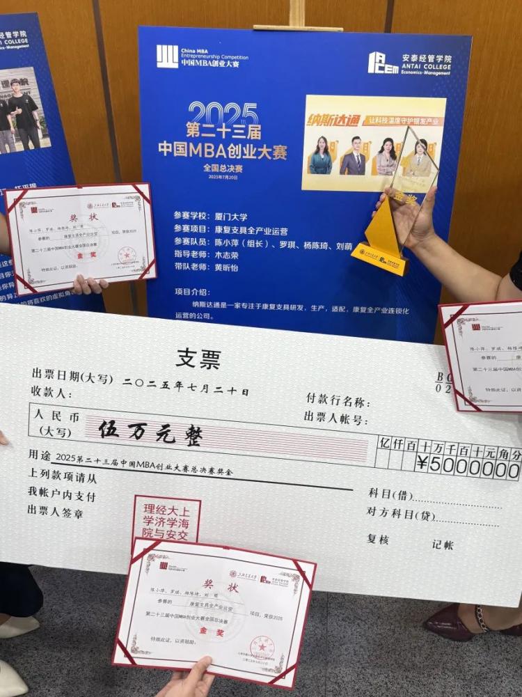 此次能從全國508支團(tuán)隊(duì)中突圍,最終以87.33分?jǐn)孬@金獎(jiǎng),對我們而言滿是意外與驚喜。我們的項(xiàng)目立意深耕康復(fù)支具領(lǐng)域,憑借全產(chǎn)業(yè)鏈運(yùn)營模式、3D打印技術(shù)支撐的精準(zhǔn)交付,以及覆蓋6省的定制服務(wù)與售后網(wǎng)絡(luò),還有15項(xiàng)專利及兩項(xiàng)國際認(rèn)證加持,在賽事中走出了自己的節(jié)奏。而這份成績的背后,離不開風(fēng)投視角的打磨讓我們突破認(rèn)知盲區(qū),木志榮教授悉心的指導(dǎo)與團(tuán)隊(duì)通力協(xié)作讓發(fā)展框架愈發(fā)清晰;更珍貴的是,結(jié)識了眾多優(yōu)秀伙伴,在與清華大學(xué)、上海交通大學(xué)、哈爾濱工業(yè)大學(xué)等頂尖項(xiàng)目的交鋒中收獲了成長。這種以賽促學(xué)、以創(chuàng)致用的培養(yǎng)模式,正是廈大MBA注重實(shí)踐教育的精髓所在,感謝廈門大學(xué)MBA平臺(tái)提供的學(xué)習(xí)交流機(jī)會(huì)!