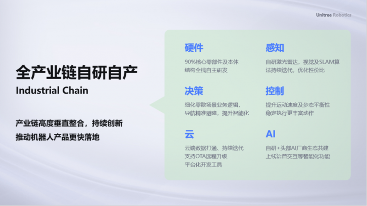 宇樹科技(Unitree Robotics)是一家世界知名的民用機器人公司,成立于2016年,專注于消費級、行業(yè)級高性能通用足式/人形機器人及靈巧機械臂的自主研發(fā)、生產(chǎn)和銷售。公司以四足機器人為主打產(chǎn)品,致力于推動機器人技術(shù)在消費、工業(yè)和教育等領(lǐng)域的應(yīng)用,累計申請國內(nèi)外專利200余項,授權(quán)專利180余項。其代表性產(chǎn)品如Laikago、Aliengo和Unitree A1,具備出色的運動能力和穩(wěn)定性,廣泛應(yīng)用于科研、娛樂和安防等場景。