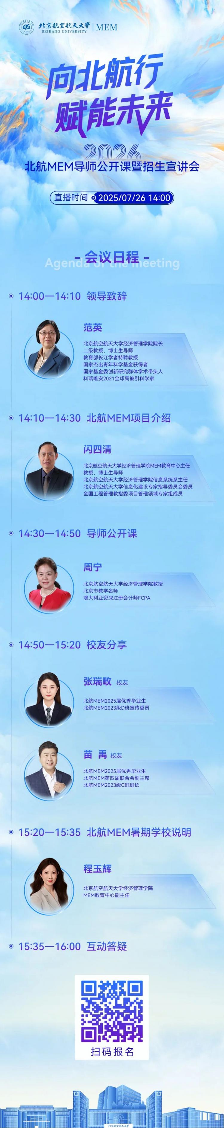 7月26日(本周六)14點(diǎn),歡迎相約2026北航MEM導(dǎo)師公開(kāi)課暨招生宣講會(huì),為你揭曉所有答案!