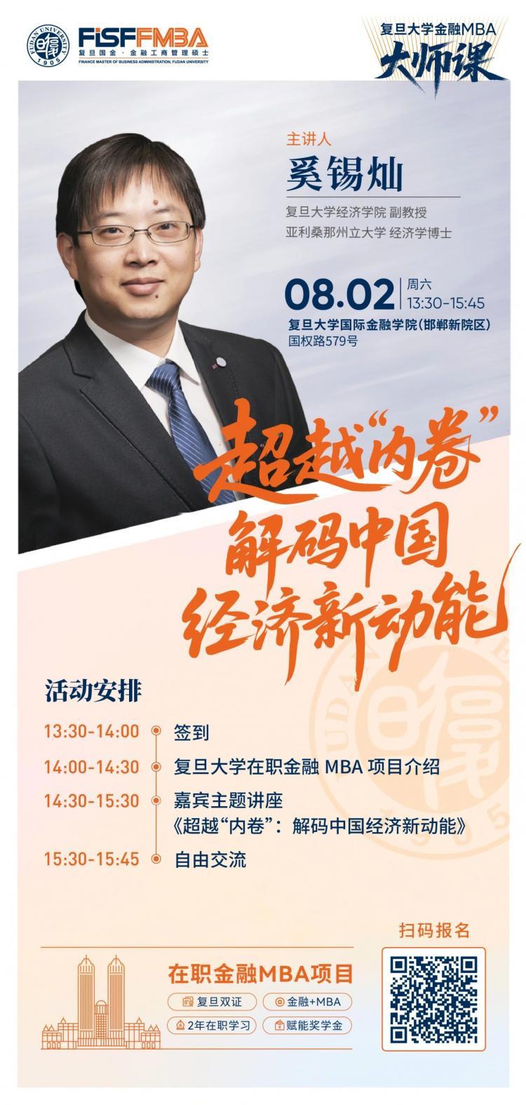 當前加班、內(nèi)卷、價格戰(zhàn)盛行,背后存在深層次結(jié)構(gòu)性難題,使企業(yè)難突圍、個人感疲憊,困局求解需洞察根源。8月2日周六下午,復(fù)旦大學在職金融MBA大師課特邀奚錫燦副教授從宏觀經(jīng)濟學視角深度解讀“內(nèi)卷”競爭現(xiàn)象。活動亮點包括名師公開課,探討“內(nèi)卷式”競爭定義、背后難題、破解困局方法、行政與市場機制關(guān)鍵作用及實現(xiàn)高質(zhì)量增長路徑,還能深度了解復(fù)旦大學在職金融MBA項目?;顒佑趶?fù)旦大學國際金融學院舉行,介紹了日程安排和報名須知。該項目旨在培養(yǎng)具國際視野等的行業(yè)領(lǐng)袖 。