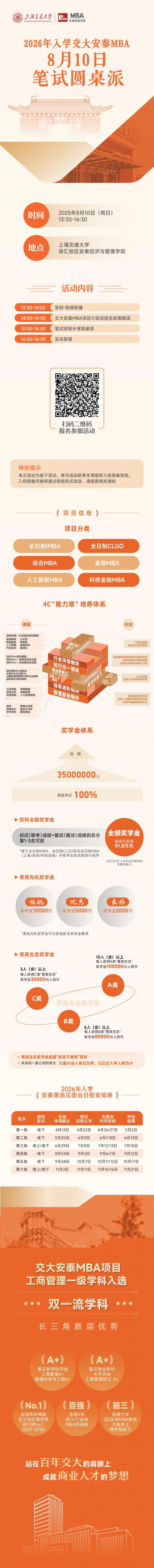 倒計(jì)時(shí)10天 | @正在備考的你,快來(lái)領(lǐng)取專屬筆試錦囊!8月10日交大安泰MBA筆試圓桌派,高分學(xué)長(zhǎng)獨(dú)家備考經(jīng)驗(yàn)全量傳授!