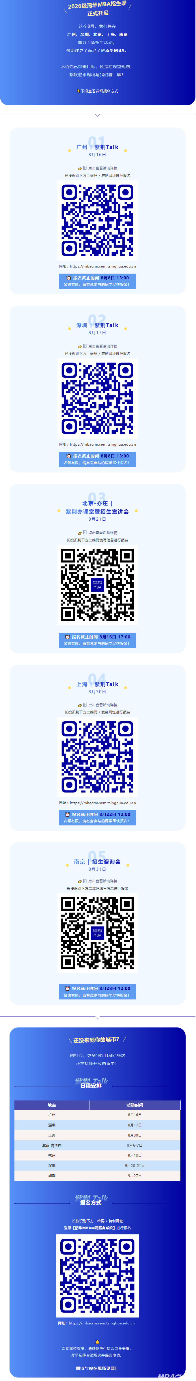 8月清華MBA招生活動(dòng)合集 | 廣州、深圳、北京、上海、南京
