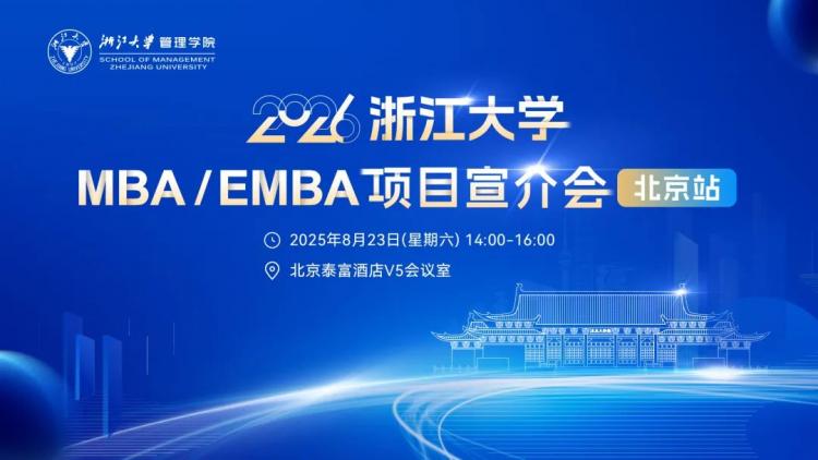8月23日,浙江大學(xué)MBA/EMBA項(xiàng)目將走進(jìn)北京,與您面對(duì)面交流學(xué)習(xí)生活、現(xiàn)場(chǎng)答疑解惑!