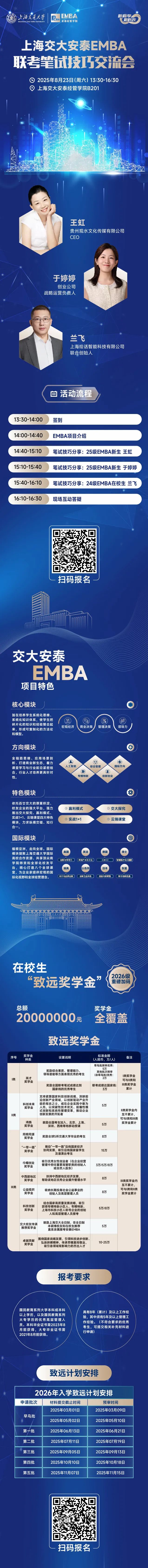 關(guān)聯(lián)問題: 2026交大安泰EMBA怎么報名?致遠獎學(xué)金有啥申請條件?在線報名流程是怎樣的?