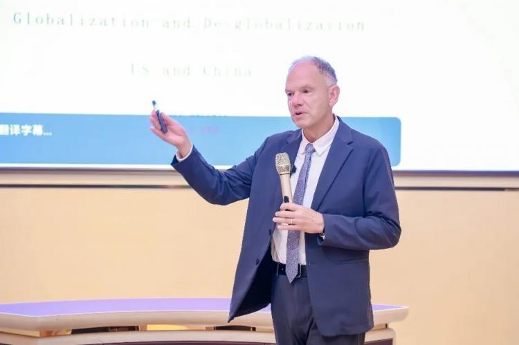 隨后,南加州大學(xué)馬歇爾商學(xué)院院長(zhǎng)Geoffrey Garrett教授為學(xué)員講授了“全球化與逆全球化——中美關(guān)系”(Globalisation and Deglobalisation—US and China Relationship)。課堂氣氛熱烈,學(xué)員們積極提問(wèn),圍繞生產(chǎn)、消費(fèi)以及對(duì)中美兩國(guó)政府的建議等議題展開(kāi)了深入且富有成效的討論,知識(shí)的碰撞讓大家對(duì)全球化與逆全球化背景下的中美關(guān)系有了更深刻的認(rèn)識(shí)和理解。