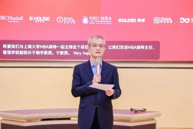 隨后,上海大學(xué)MBA中心主任、管理學(xué)院副院長(zhǎng)于曉宇教授登臺(tái)致辭,他首先向順利畢業(yè)的全體學(xué)員表示祝賀,同時(shí)感謝美方教授團(tuán)隊(duì)以及雙方教師與工作人員的傾情付出。于主任指出,從今年3月,上海大學(xué)MBA中心和南加大馬歇爾商學(xué)院兩校正式簽署戰(zhàn)略合作協(xié)議,到今天項(xiàng)目的圓滿(mǎn)落幕,僅用了短短數(shù)月,就完成了從愿景到現(xiàn)實(shí)的跨越。該項(xiàng)目正是對(duì)上海大學(xué)MBA中心“數(shù)智化、產(chǎn)業(yè)驅(qū)動(dòng)、國(guó)際化”(DIG)戰(zhàn)略的積極踐行。通過(guò)沉浸式課程教學(xué)與前沿企業(yè)參訪,讓學(xué)員和參與學(xué)習(xí)的上海大學(xué)教師共同提升了跨界整合及定義未來(lái)創(chuàng)新的能力。項(xiàng)目為商業(yè)教育國(guó)際化開(kāi)辟了新起點(diǎn),也為教師發(fā)展和學(xué)員成長(zhǎng)搭建了更廣闊的平臺(tái)。最后,于主任還表達(dá)了對(duì)雙方未來(lái)深入合作的殷切期待。