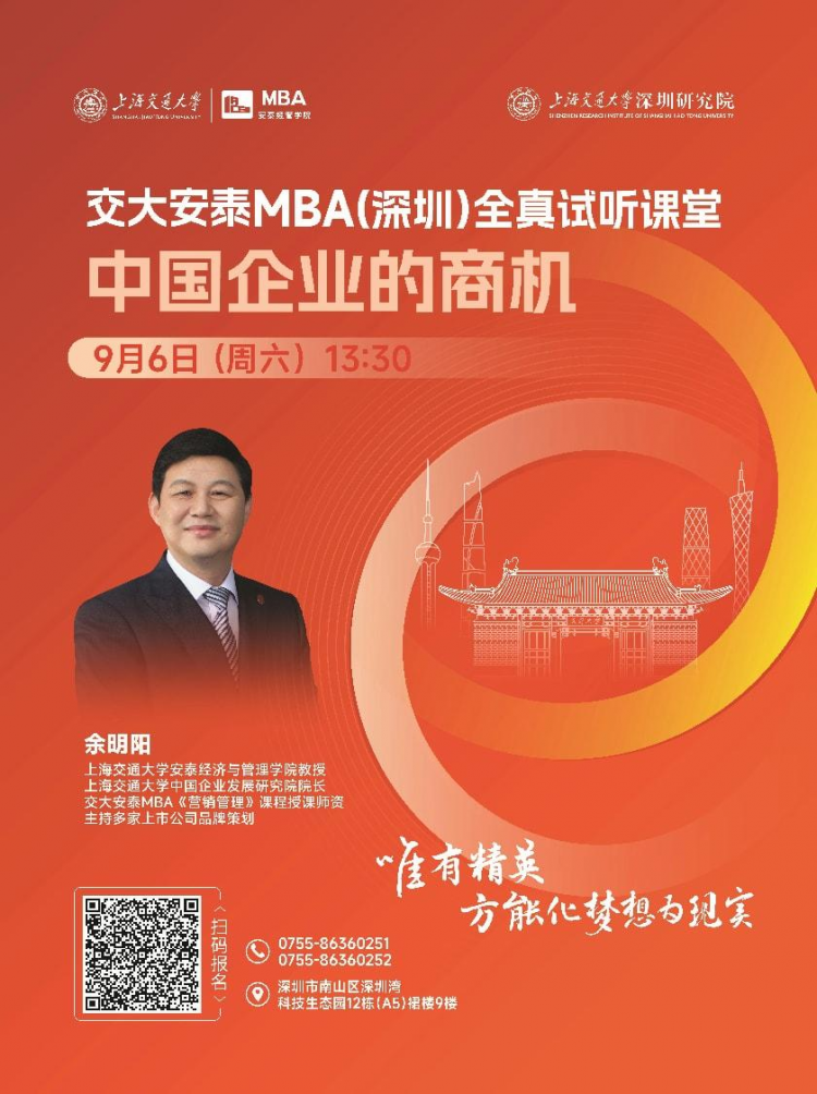 深圳活動預約 | 搶占先機!余明陽解析中國企業(yè)的商機 —— 交大安泰 MBA 全真試聽課堂開講