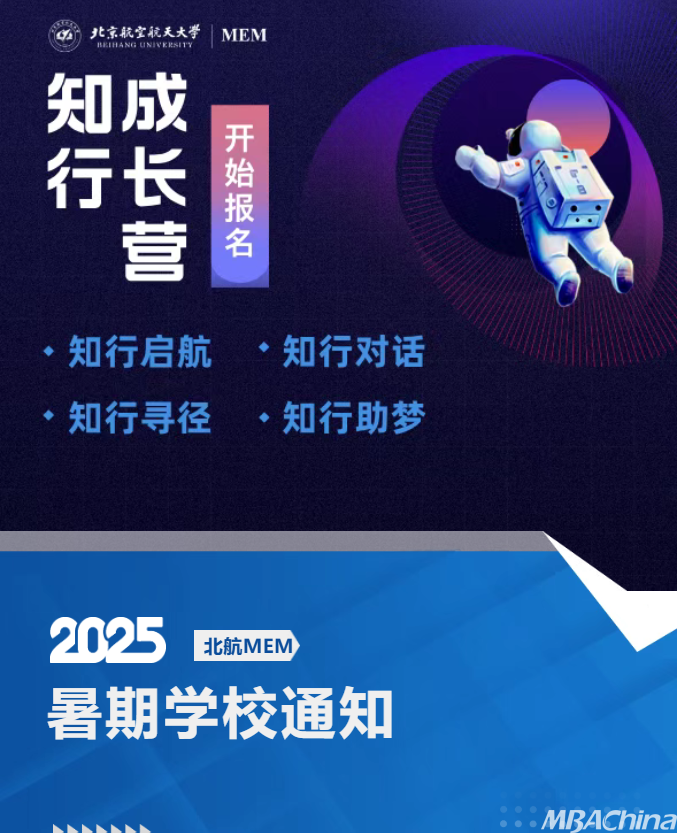 為幫助青年人深入了解北航經(jīng)濟管理學(xué)院及北航MEM項目特色,助力青年人持續(xù)學(xué)習與成長,學(xué)院擬定于2025年6月-9月舉辦北航MEM暑期學(xué)校-知行成長營。