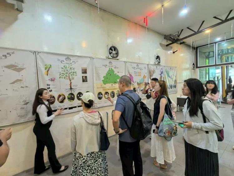 短暫休息后,我們來(lái)到了Cocoa Kingdom巧克力工廠參訪。進(jìn)入園區(qū),濃郁的可可香氣便裹挾著暖意撲面而來(lái),入口處幾株掛著橙紅色果莢的可可樹(shù),到發(fā)酵后棕褐色的可可豆,直到成品巧克力的制作,展現(xiàn)了傳統(tǒng)制造業(yè)的創(chuàng)新轉(zhuǎn)型:從原料供應(yīng)商向品牌商轉(zhuǎn)型,從標(biāo)準(zhǔn)化生產(chǎn)向個(gè)性化定制轉(zhuǎn)型,從傳統(tǒng)銷售向體驗(yàn)式營(yíng)銷轉(zhuǎn)型,建立了獨(dú)特的市場(chǎng)競(jìng)爭(zhēng)優(yōu)勢(shì)。作為重要可可產(chǎn)區(qū),馬來(lái)西亞通過(guò)精深加工提升產(chǎn)品附加值。當(dāng)然,必不可少的試吃環(huán)節(jié)更像一場(chǎng) “風(fēng)味探索之旅”,榴蓮、純黑巧、辣椒等特色口味,讓大家更有了直觀的體驗(yàn)感受。