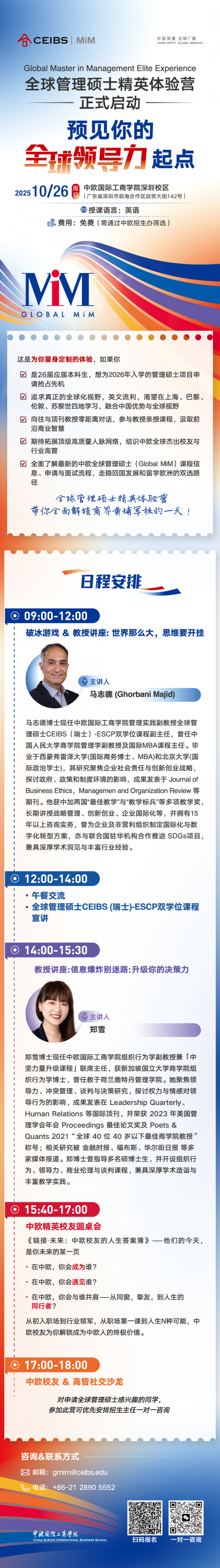 全球管理碩士(Global MiM)精英體驗(yàn)營開始報(bào)名-深圳