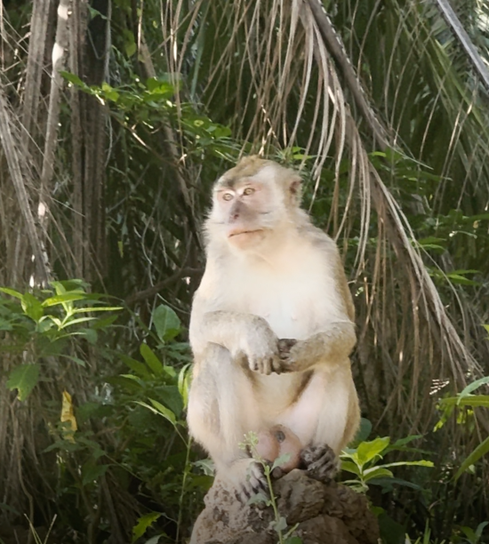本日的第二站,我們驅(qū)車前往卡瓦卡瓦河紅樹林,開啟了夢幻的自然生態(tài)之旅。觀賞的過程更像一場 “靜音的自然課堂”。我們的船身貼著水面緩緩移動靠在河岸邊,學(xué)生們安靜地觀察野生猴子的生活習(xí)慣。沒有表演、沒有干預(yù),只有原生態(tài)的自然場景。我們了解到,猴子嚴格禁止投喂,只吃紅樹林的特定葉片,它們吃樹葉時不會破壞樹干,還會幫樹木傳播種子,成為紅樹林的‘守護者’。這一經(jīng)歷讓大家深刻認識到:猴子并非取悅?cè)祟惖摹把輪T”,而是森林社會中自在生活的“居民”。大家重新反思人類與野生動物之間的關(guān)系,體會到真正的生態(tài)旅游應(yīng)秉持敬畏與尊重。