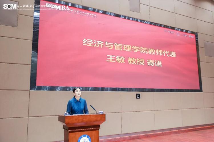 經(jīng)濟(jì)與管理學(xué)院教師代表王敏教授寄語新同學(xué),祝賀同學(xué)們跨越山海,以勇氣與智慧叩開知識(shí)之門,并以親身經(jīng)歷詮釋“教學(xué)相長”與“產(chǎn)教融合”的理念,強(qiáng)調(diào)師生是彼此“雙向賦能”的伙伴。她鼓勵(lì)新生積極投入成電MBA的學(xué)習(xí)平臺(tái),通過跨界學(xué)習(xí)應(yīng)對(duì)挑戰(zhàn)、實(shí)現(xiàn)能力重塑,并衷心祝賀大家開啟人生新篇章,成為這個(gè)溫暖奮進(jìn)的大家庭中的一員。