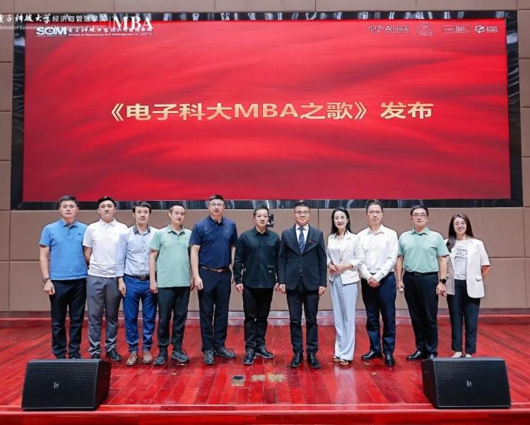 緊接著,《電子科大MBA之歌》的發(fā)布將現(xiàn)場推向又一個(gè)高潮。MBA成都校友會(huì)副會(huì)長張鑫先生深情分享了歌曲的創(chuàng)作歷程。他談到,為踐行學(xué)?!拔幕d?!睉?zhàn)略,MBA校友會(huì)與聯(lián)合會(huì)共同發(fā)起創(chuàng)作倡議,歌詞歷經(jīng)六個(gè)月的反復(fù)打磨與集體智慧結(jié)晶,最終成型。并邀請(qǐng)著名音樂創(chuàng)作人、四川省音樂家協(xié)會(huì)作曲家黎剛老師為之傾情譜曲。尤為感人的是,本次創(chuàng)作及制作費(fèi)用全部來源于學(xué)院老師和歷屆MBA學(xué)子的239份心意樂捐,凝聚了成電MBA大家庭的共同支持與真摯情感。現(xiàn)場伴隨6位領(lǐng)唱悠揚(yáng)歌聲,全體MBA起立輕聲合唱,鏗鏘的歌詞和激昂的旋律,唱出了成電MBA人團(tuán)結(jié)奮進(jìn)、追求卓越的精神風(fēng)貌。