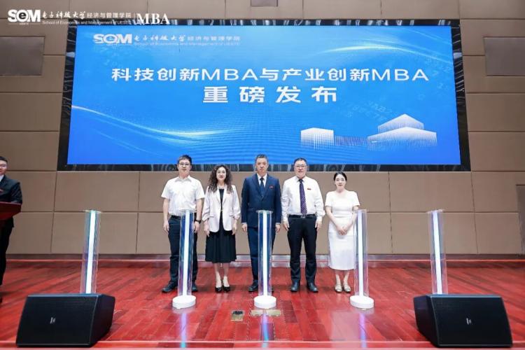 典禮現(xiàn)場最受矚目的環(huán)節(jié),無疑是“科技創(chuàng)新MBA”與“產(chǎn)業(yè)創(chuàng)新MBA”的重磅發(fā)布。校領(lǐng)導(dǎo)李會(huì)勇、陳旭院長、李鈺書記、研究生院田蜜副處長和北京思特奇公司人才引進(jìn)開發(fā)總監(jiān)王春芳女士共同啟動(dòng)燈柱,正式開啟了這一重要時(shí)刻。這標(biāo)志著學(xué)院在深化產(chǎn)教融合、服務(wù)國家戰(zhàn)略方面邁出的又一堅(jiān)實(shí)步伐?,F(xiàn)場通過視頻全面展示了2026版UESTC MBA Pro的培養(yǎng)特色與課程體系——學(xué)院充分發(fā)揮學(xué)校頂尖工科優(yōu)勢(shì),推動(dòng)前沿信息技術(shù)與管理實(shí)踐的深度融合,系統(tǒng)提升MBA學(xué)生的實(shí)踐創(chuàng)新能力,助力他們敏銳捕捉商業(yè)機(jī)遇、洞察產(chǎn)業(yè)未來新趨勢(shì)。