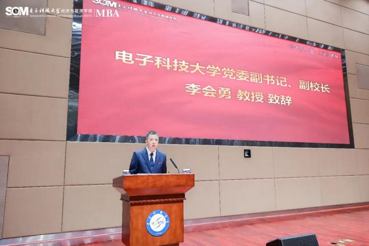 校黨委副書記、副校長李會(huì)勇教授代表學(xué)校向2025級(jí)MBA新生的順利入學(xué)表示熱烈祝賀。他介紹了學(xué)校的整體情況和MBA的辦學(xué)成果,特別強(qiáng)調(diào)學(xué)校作為“電子信息領(lǐng)域排頭兵”的使命擔(dān)當(dāng)。勉勵(lì)新生充分利用學(xué)校在信息技術(shù)領(lǐng)域的顯著優(yōu)勢(shì),將科技與管理深度融合,努力成為兼具創(chuàng)新能力和實(shí)踐智慧的復(fù)合型人才。并向同學(xué)們提出三點(diǎn)期望:做科技創(chuàng)新的探索者、做知行合一的實(shí)踐者、做合作共贏的倡導(dǎo)者,鼓勵(lì)大家秉承“求實(shí)求真、大氣大為”的校訓(xùn),在未來學(xué)習(xí)生涯中拓展視野、錘煉能力,成長為兼具科技素養(yǎng)和管理智慧的新時(shí)代商業(yè)領(lǐng)袖。