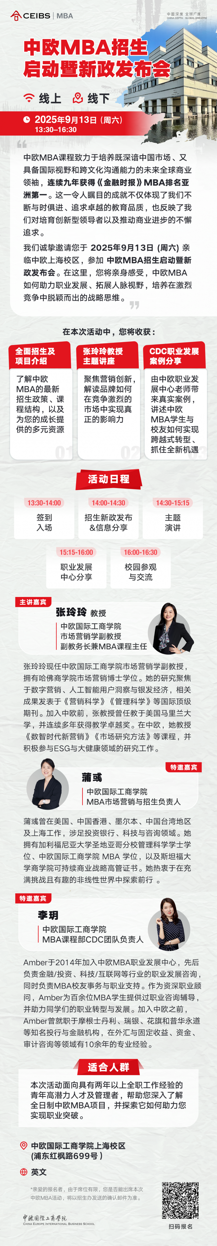 【活動(dòng)報(bào)名】中歐MBA招生啟動(dòng)暨新政發(fā)布會(huì)!