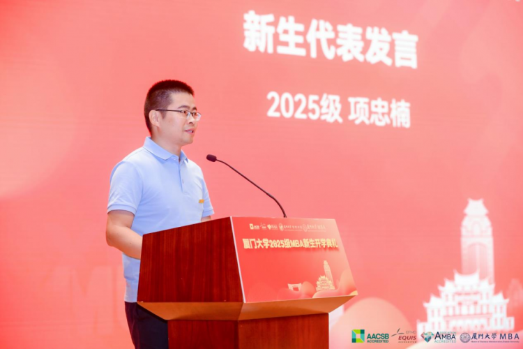 2025級新生代表項忠楠真摯分享了其加入廈大MBA的初心——無論是尋求職業(yè)突破,還是向往學術(shù)底蘊,這里皆是啟航新程的起點。他承諾將以全力以赴的態(tài)度投入學習,彰顯新一代商科人的銳氣與擔當。