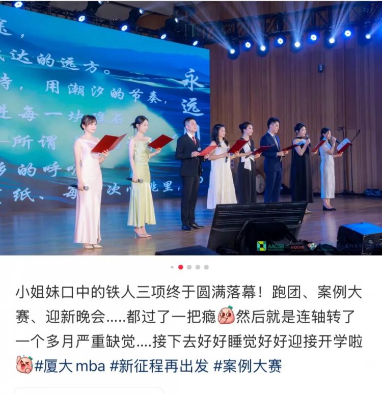 “情定廈大MBA”環(huán)節(jié)將典禮氛圍推向高潮。現(xiàn)場通過視頻生動再現(xiàn)2025級新生入學前參與的活動盛況:新生龍舟賽里,MBAer們揮槳擊水、奮勇競渡,在協(xié)作拼搏中凝聚班級向心力;“尋跡長汀·傳承嘉庚精神”紅色實踐中,MBAer們走進廈大長汀舊址,溯源校史初心,在紅色教育中厚植家國情懷;新生商業(yè)案例分析大賽上,MBAer們聚焦真實商業(yè)難題,以實戰(zhàn)演練拆解復雜問題,錘煉精準決策與破局能力。
