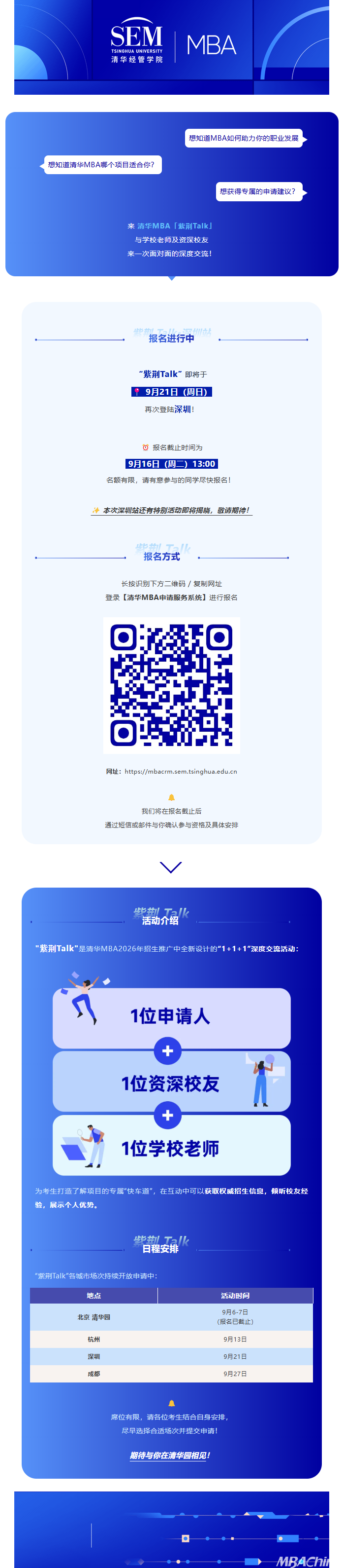 大灣區(qū)考生請注意!清華MBA紫荊Talk深圳站等你參與