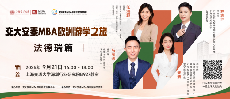 深圳活動(dòng)報(bào)名 | 9月21日,海外游學(xué)賦能商科成長(zhǎng):交大安泰 MBA 海外游學(xué)分享會(huì)即將開啟