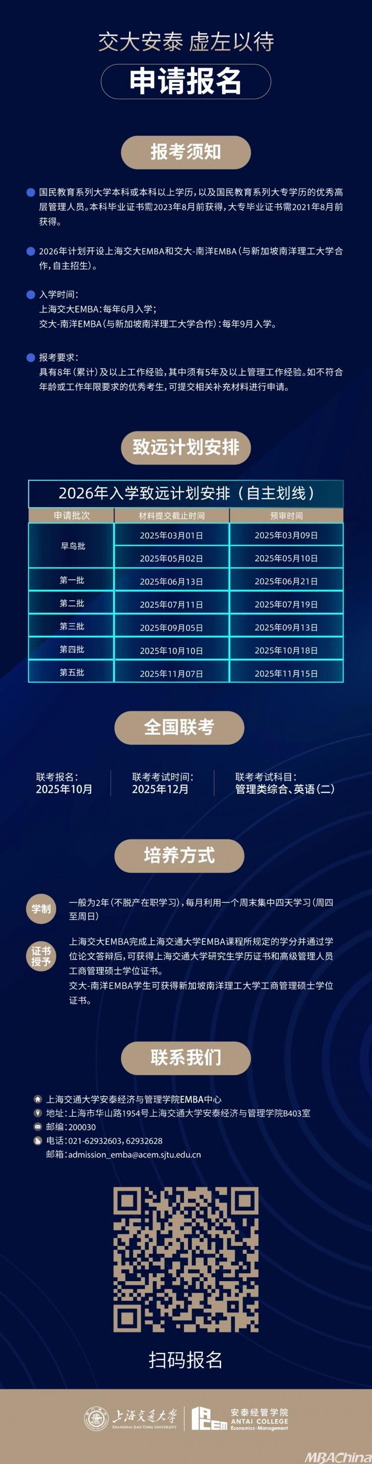 【重要通知】10月18日交大安泰EMBA預(yù)審 | 申請(qǐng)截止:10月10日