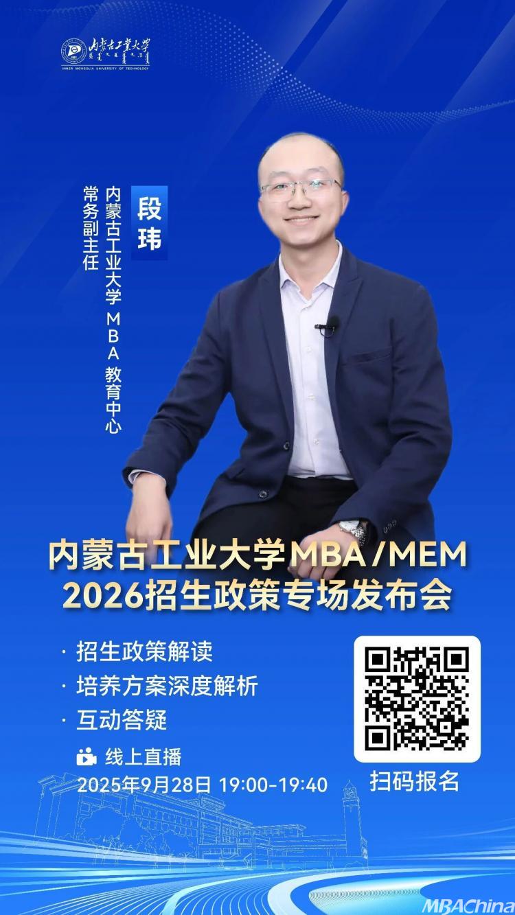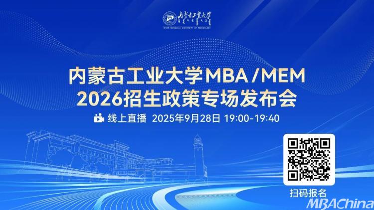 9月28日 | 內(nèi)蒙古工業(yè)大學(xué) MBA/MEM 2026招生政策專場發(fā)布會即將開啟!