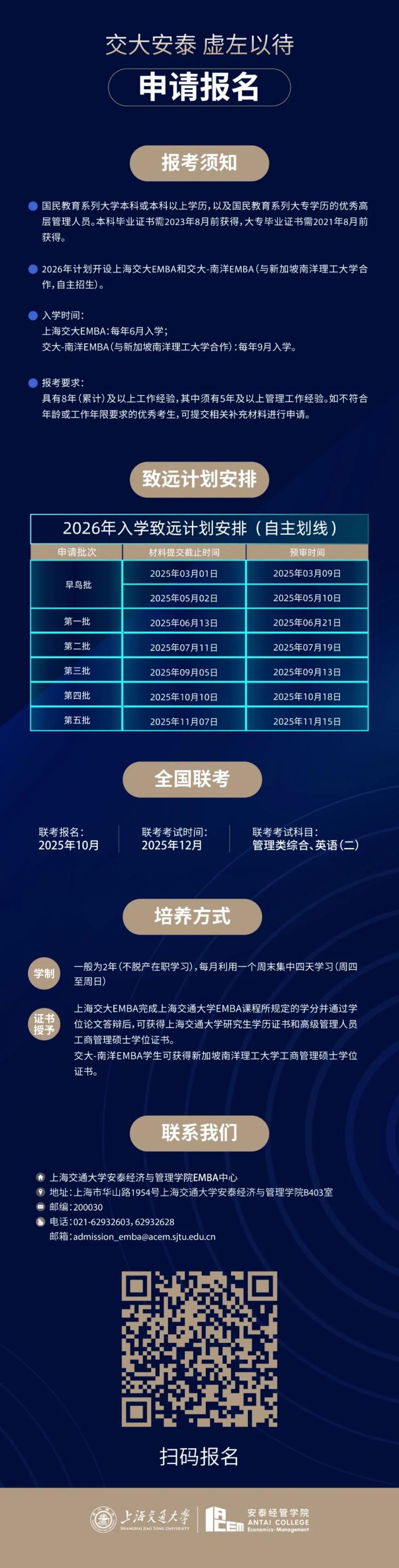 發(fā)布重要通知,10月18日交大安泰EMBA將進行預審,申請截止日期為10月10日。
