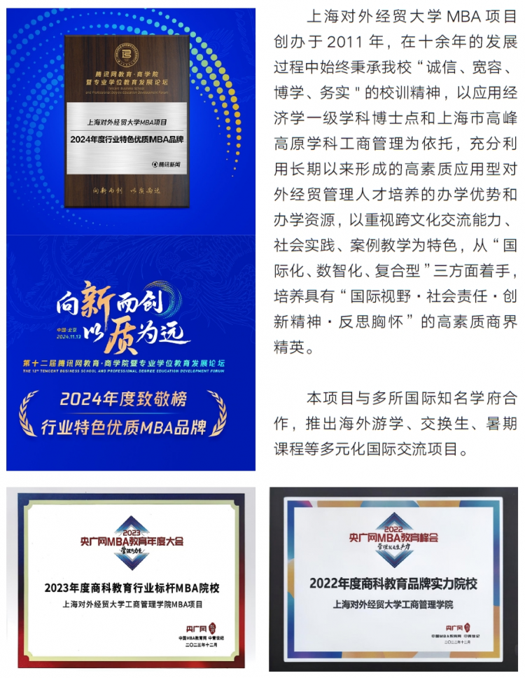 26招生 | 上海對外經(jīng)貿(mào)大學(xué)2026年工商管理碩士(MBA)招生簡章