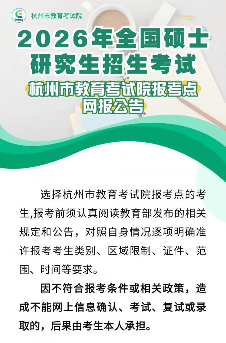 招生工作 | 2026年全國碩士研究生招生考試杭州市教育考試院報考點(3301)網(wǎng)報公告