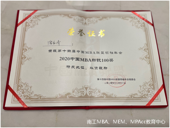 接下來的晚宴與頒獎環(huán)節(jié)讓人激動。南京工業(yè)大學(xué)斬獲一項團(tuán)體獎:2020中國MBA優(yōu)秀聯(lián)合會獎,四項個人獎:聯(lián)合會賁建軍主席、黃戈副主席獲得中國MBA優(yōu)秀干部獎,2019級MBA潘家清與2020級MBA杜祥獲得中國MBA新銳100獎,近一年以來的付出可謂實至名歸。