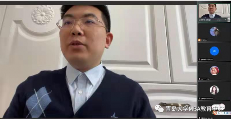 2021年11月27日下午1點(diǎn),青島大學(xué)MBA第八屆聯(lián)合會在線上如期跟大家見面。出席聯(lián)合會的有青島大學(xué)MBA教育中心主任——李金克、第七屆聯(lián)合會副主席——王震(中國工商銀行股份有限公司青島市南第二支行團(tuán)委書記、辦公室副主任),以及欒戈偉老師和陳云丹老師。