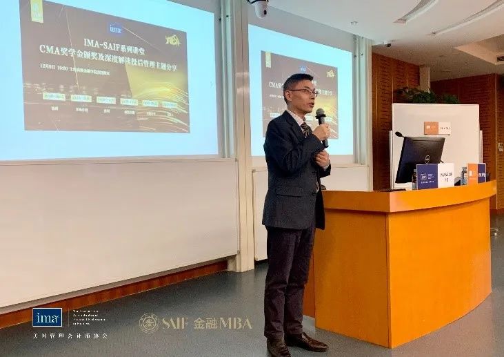 緊接著,管理會(huì)計(jì)專業(yè)人士劉先生為與會(huì)者進(jìn)行了題為“深度解讀投后管理”的主題分享。他從投后管理到底管什么、投資標(biāo)的企業(yè)是否接受管理、投后管理需要什么樣的專業(yè)素質(zhì)等維度進(jìn)行分享;目前國(guó)內(nèi)現(xiàn)狀是重投前,輕投后;如何盡快完善投后管理體系,加強(qiáng)投后管理能力,是整個(gè)金融資管行業(yè)需要重視的課題。他期待未來(lái)更多的CMA持證者能運(yùn)用管理會(huì)計(jì)中的管理工具,建立健全的投資投后管理體系,發(fā)揮管理會(huì)計(jì)對(duì)企業(yè)決策、經(jīng)營(yíng)和評(píng)價(jià)的支持作用。