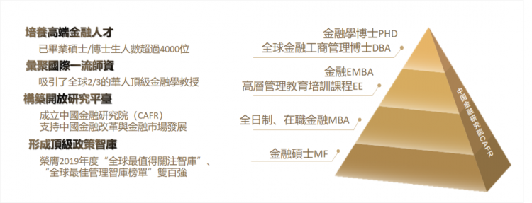 上海交通大學(xué)上海高級金融學(xué)院(SAIF)是上海市人民政府為實現(xiàn)將上海建設(shè)成國際金融中心的國家戰(zhàn)略,依託上海交通大學(xué),由海外著名華人學(xué)者牽頭,按照國際一流商學(xué)院模式創(chuàng)立的國際化金融學(xué)院。高金以“彙聚國際一流師資、培養(yǎng)高端金融人、構(gòu)築開放研究平臺、形成頂級政策智庫”為使命,為中國金融事業(yè)的發(fā)展做出了重要的貢獻。 高金FMBA專案是中國首個金融專業(yè)方向的工商管理碩士學(xué)位專案,整合全球頂級教育資源,課程廣泛參考了麻省理工斯隆商學(xué)院、沃頓商學(xué)院等全球頂尖商學(xué)院金融課程體系,緊密結(jié)合中國經(jīng)濟與金融發(fā)展實際,形成歐美與中國兩大金融市場聯(lián)動。