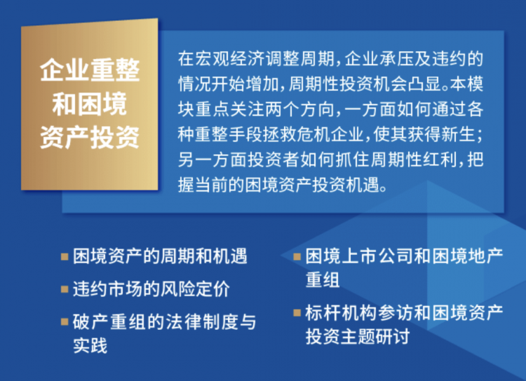 深度聚焦時下大熱的特殊機會投資風(fēng)口問題,全方位深入探討參與困境上市企業(yè)重整的“道”與“術(shù)”。