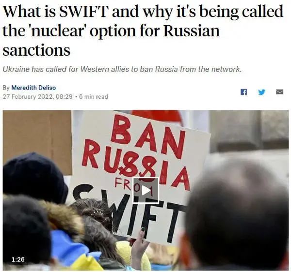 當(dāng)?shù)貢r(shí)間2月26日晚間,白宮發(fā)布聯(lián)合聲明稱,美國、歐盟(法德意)、英國、加拿大決定將部分俄羅斯銀行從環(huán)球銀行金融電信協(xié)會(SWIFT)國際結(jié)算系統(tǒng)中剔除出去,一些輿論將西方的這項(xiàng)決定稱為投放“金融核武...