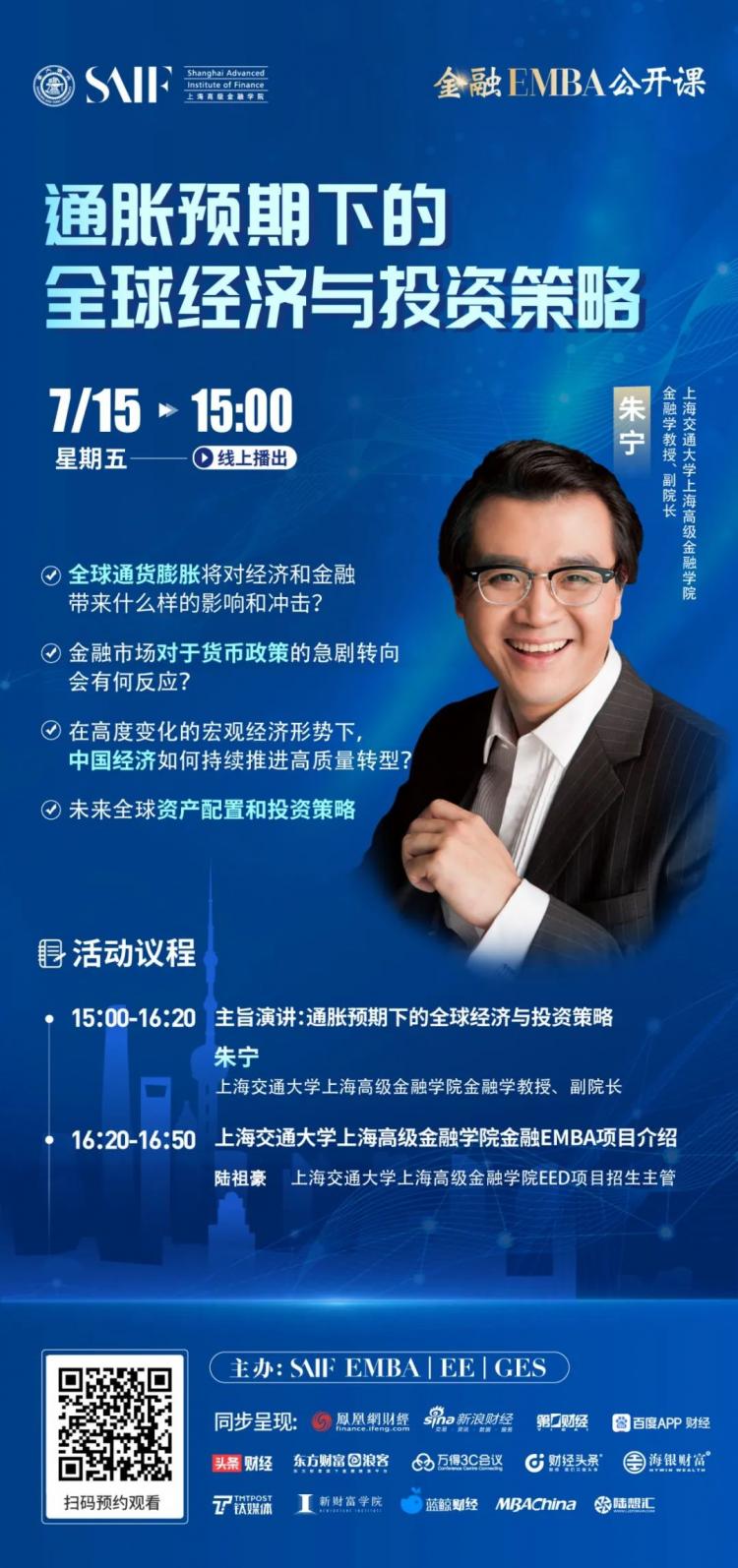 2022 SAIF金融EMBA公開課 | 通脹預(yù)期下的全球經(jīng)濟(jì)與投資策略-7月15日