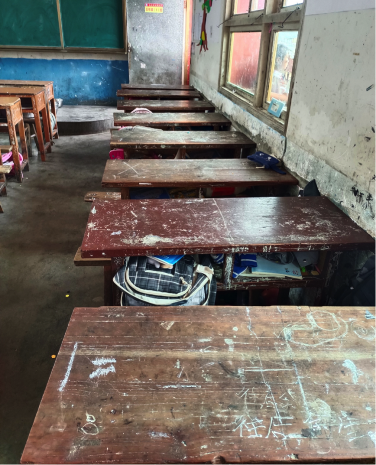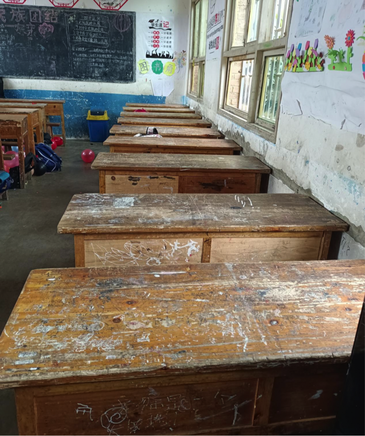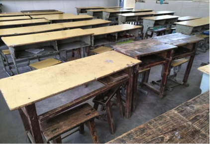 學(xué)生課桌是20年前配備的雙人老木桌,無(wú)論是材質(zhì)還是使用等都很困難。由于目前學(xué)校資金較為匱乏,無(wú)法購(gòu)買(mǎi)新的課桌,加之學(xué)校就讀學(xué)生日益增多,之前的老式課桌已經(jīng)無(wú)法滿(mǎn)足學(xué)校正常教學(xué)秩序的開(kāi)展。