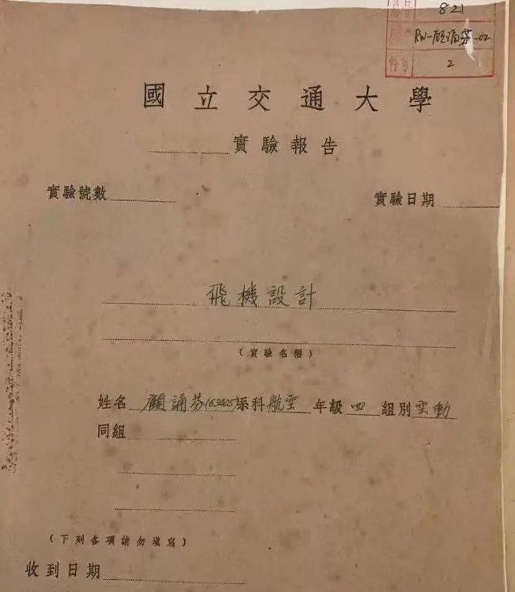 顧誦芬在交大就讀期間所作《飛機(jī)設(shè)計(jì)》的實(shí)驗(yàn)報(bào)告