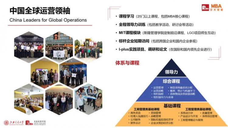 上海交通大學安泰經(jīng)濟與管理學院中國全球運營領(lǐng)袖(CLGO)項目力求為中國乃至全球運營領(lǐng)域培養(yǎng)精通技術(shù)、深諳管理、具有全球化視野,同時對中國市場環(huán)境有深刻理解的精英。