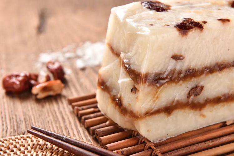 每年過(guò)年,崇明糕是上海人必吃的食品之一。由糯米粉和紅棗、核桃、桂花、松仁等眾多配料混合制作而成,既可以切片當(dāng)零食,又能油炸或放在酒釀湯中食用。崇明糕不僅好吃,還代表著團(tuán)圓、美滿、幸福和甜蜜。