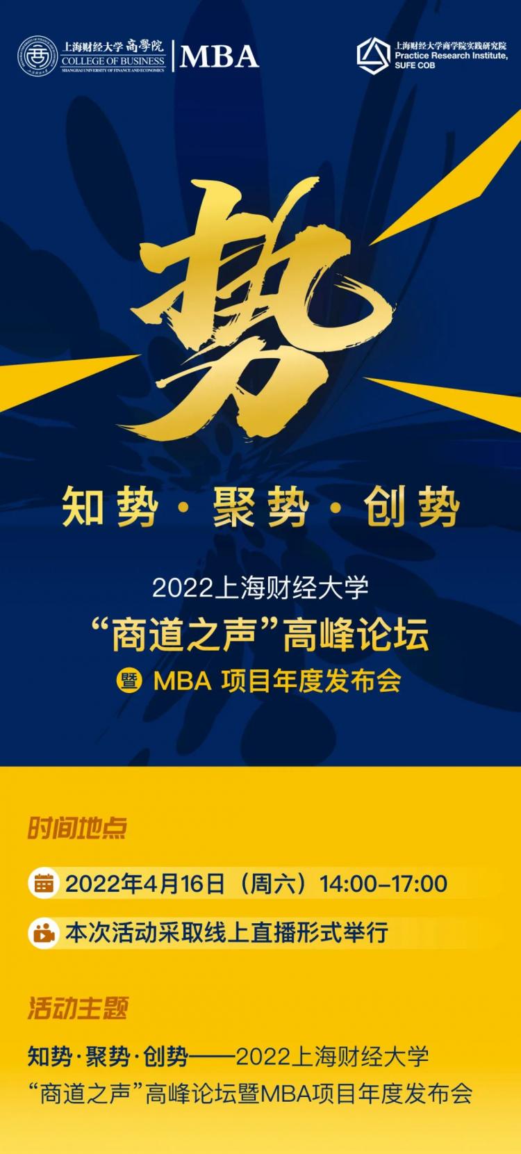 2022上海財(cái)經(jīng)大學(xué)“商道之聲”高峰論壇暨M(jìn)BA項(xiàng)目年度發(fā)布會(huì)