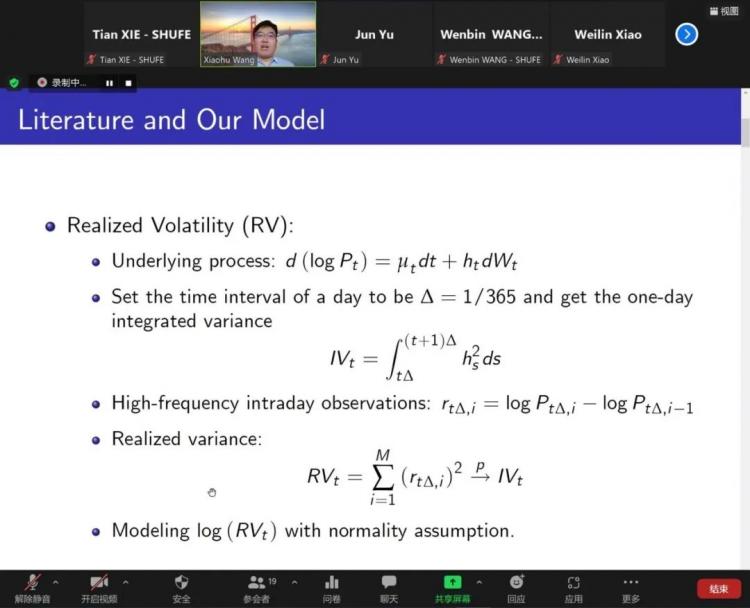 6月3日,由上海市數(shù)據(jù)科技與決策前沿科學(xué)研究基地,商務(wù)分析研究中心,上海財(cái)經(jīng)大學(xué)商學(xué)院主辦的“量化方法與數(shù)據(jù)分析講座系列”(Quantitative Methods and Data Analytics Seminar Series,QMDA)第12期在線上如期舉行。來(lái)自復(fù)旦大學(xué)的王曉虎老師受邀做了主題為“Modeling and Forecasting Realized Volatility of Cryptocurrency”的精彩學(xué)術(shù)講座。本次講座由上海財(cái)經(jīng)大學(xué)商學(xué)院王文斌教授和謝天副教授主持。