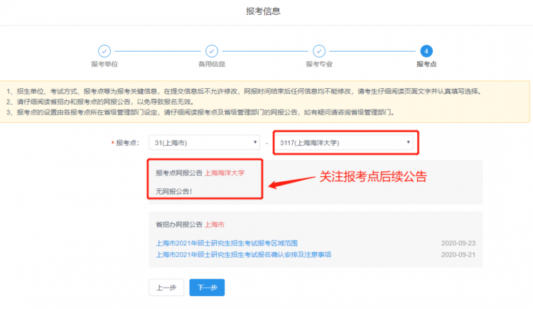 招生單位、報考點、考試方式不可修改,請考生仔細閱讀頁面文字并認真填寫選擇。