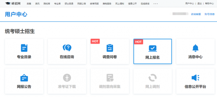 登錄研招網(wǎng),點擊“報名入口-碩士統(tǒng)考”,進入后首先會看到這個頁面。