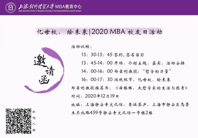 【預(yù)告】憶母校,繪未來|上海對外經(jīng)貿(mào)大學(xué)2020MBA校友日歡迎你的到來
